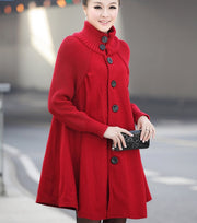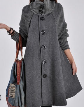 New oversized women's mid length loose fitting woolen coat cape woolen windbreaker coat